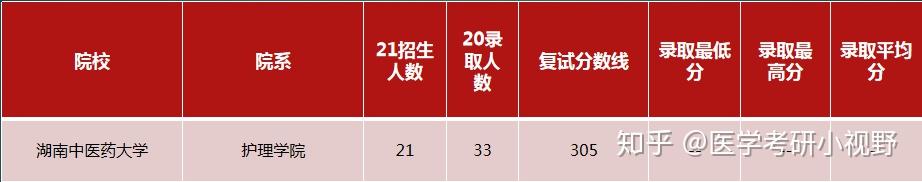 2020年,湖南中医药大学护理硕士录取33人,录取分数线305,学生录取分数未公布。